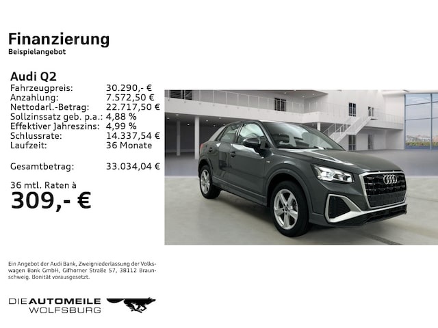 Voor zakelijke klanten bieden wij optioneel een financial lease oplossing en voor particuliere klanten een persoonlijke lening. Met onderstaande module kunt u uw maandbedrag berekenen voor het financieren van bovenstaande Audi Q2.