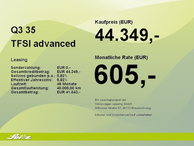 Voor zakelijke klanten bieden wij optioneel een financial lease oplossing en voor particuliere klanten een persoonlijke lening. Met onderstaande module kunt u uw maandbedrag berekenen voor het financieren van bovenstaande Audi Q3.