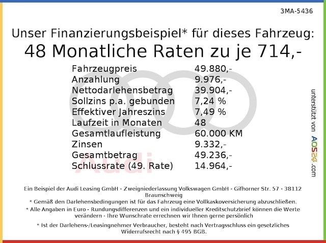 Voor zakelijke klanten bieden wij optioneel een financial lease oplossing en voor particuliere klanten een persoonlijke lening. Met onderstaande module kunt u uw maandbedrag berekenen voor het financieren van bovenstaande Audi S3.