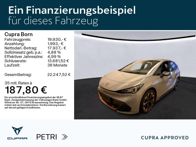 Deze Cupra Born staat te koop in Duitsland bij een officiële Cupra dealer. Wanneer u gebruik maakt van onze auto import service dan regelen wij het aankoopproces samen met u. U tekent en betaalt zelf. U bent in de meeste gevallen ook juridisch de koper. Dat kan belangrijk zijn voor garantie, rechtspositie en de lagere Duitse btw.