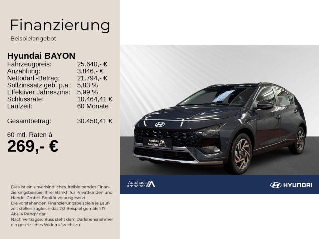 Voor zakelijke klanten bieden wij optioneel een financial lease oplossing en voor particuliere klanten een persoonlijke lening. Met onderstaande module kunt u uw maandbedrag berekenen voor het financieren van bovenstaande Hyundai Bayon.