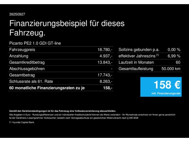 Voor zakelijke klanten bieden wij optioneel een financial lease oplossing en voor particuliere klanten een persoonlijke lening. Met onderstaande module kunt u uw maandbedrag berekenen voor het financieren van bovenstaande Kia Picanto.
