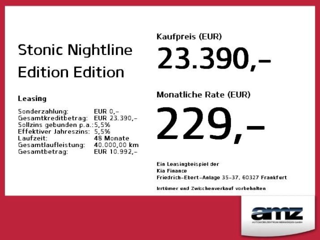 Voor zakelijke klanten bieden wij optioneel een financial lease oplossing en voor particuliere klanten een persoonlijke lening. Met onderstaande module kunt u uw maandbedrag berekenen voor het financieren van bovenstaande Kia Stonic.