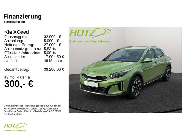 Voor zakelijke klanten bieden wij optioneel een financial lease oplossing en voor particuliere klanten een persoonlijke lening. Met onderstaande module kunt u uw maandbedrag berekenen voor het financieren van bovenstaande Kia XCeed.