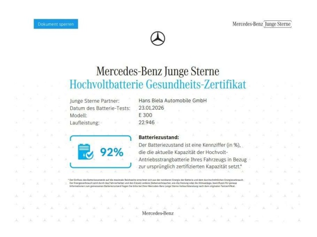 In de Duitse advertentie van deze Mercedes-Benz E 300 staat een CO2-uitstoot vermeld van 15 gram per km. Op basis daarvan hebben wij geautomatiseerd een indicatief rest-BPM bedrag van € 446 berekend op basis van de afschrijvingstabel van de Belastingdienst. Een handmatige BPM berekening o.b.v. een waardebepaling leidt voor jonge auto's vaak tot een lager rest-BPM bedrag. Vraag hiertoe een offerte aan, vaak kunnen we daar een besparing voor u realiseren. Om hiervoor een fiscaal akkoord te krijgen zal de BPM aangifte worden aangevuld met een waardebepaling taxatierapport. Wij rekenen een fee voor onze bemiddeling hierin. Uiteraard alleen wanneer dit rendabel is.