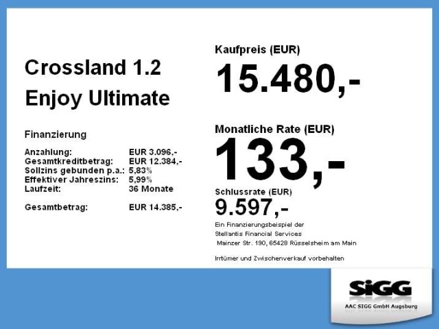 Voor zakelijke klanten bieden wij optioneel een financial lease oplossing en voor particuliere klanten een persoonlijke lening. Met onderstaande module kunt u uw maandbedrag berekenen voor het financieren van bovenstaande Opel Crossland.