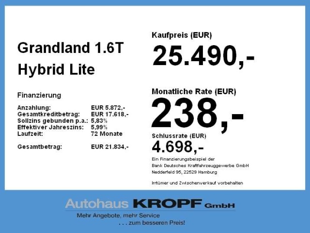 In de Duitse advertentie van deze Opel Grandland staat een CO2-uitstoot vermeld van 81 gram per km. Op basis daarvan hebben wij geautomatiseerd een indicatief rest-BPM bedrag van € 2.300 berekend op basis van de afschrijvingstabel van de Belastingdienst. Een handmatige BPM berekening o.b.v. een waardebepaling leidt voor jonge auto's vaak tot een lager rest-BPM bedrag. Vraag hiertoe een offerte aan, vaak kunnen we daar een besparing voor u realiseren. Om hiervoor een fiscaal akkoord te krijgen zal de BPM aangifte worden aangevuld met een waardebepaling taxatierapport. Wij rekenen een fee voor onze bemiddeling hierin. Uiteraard alleen wanneer dit rendabel is.