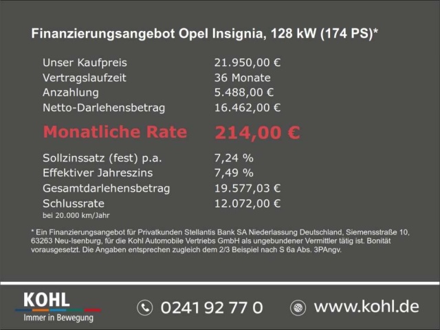 Voor zakelijke klanten bieden wij optioneel een financial lease oplossing en voor particuliere klanten een persoonlijke lening. Met onderstaande module kunt u uw maandbedrag berekenen voor het financieren van bovenstaande Opel Insignia.