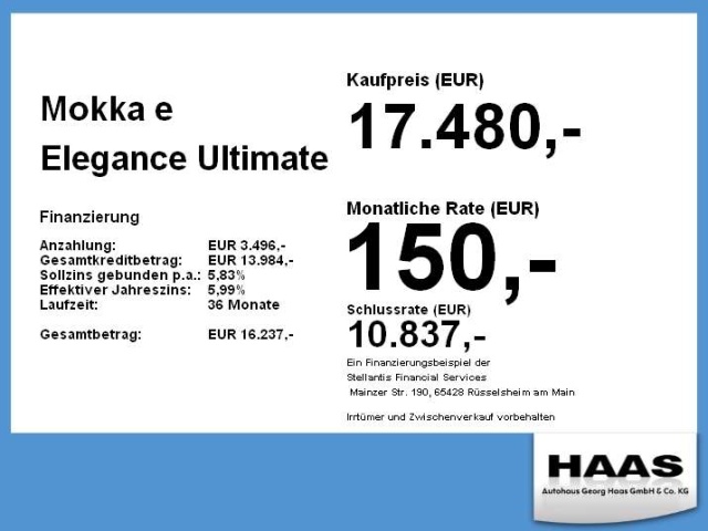 Voor zakelijke klanten bieden wij optioneel een financial lease oplossing en voor particuliere klanten een persoonlijke lening. Met onderstaande module kunt u uw maandbedrag berekenen voor het financieren van bovenstaande Opel Mokka E.