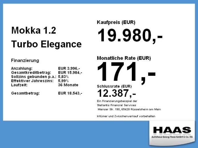 Voor zakelijke klanten bieden wij optioneel een financial lease oplossing en voor particuliere klanten een persoonlijke lening. Met onderstaande module kunt u uw maandbedrag berekenen voor het financieren van bovenstaande Opel Mokka.