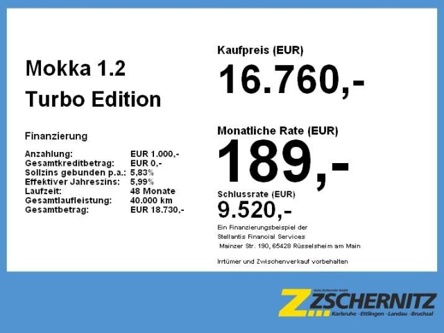 Voor zakelijke klanten bieden wij optioneel een financial lease oplossing en voor particuliere klanten een persoonlijke lening. Met onderstaande module kunt u uw maandbedrag berekenen voor het financieren van bovenstaande Opel Mokka.