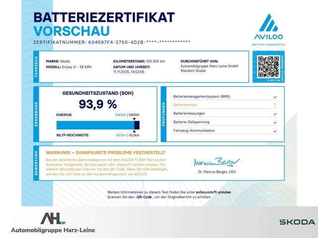 Deze Skoda Enyaq staat te koop in Duitsland bij een officiële Skoda dealer. Wij zullen het aankoopproces volledig voor u faciliteren wanneer u gebruik maakt van ons Premium of Premium + pakket. U hoeft hier dan niets zelf voor te doen, behalve uw handtekening zetten en te betalen. In de meeste gevallen bent u op papier de koper van auto. Dit i.v.m. zaken als garantie, juridische positie en lagere BTW in Duitsland (BTW, alleen relevant wanneer u de auto particulier aanschaft).