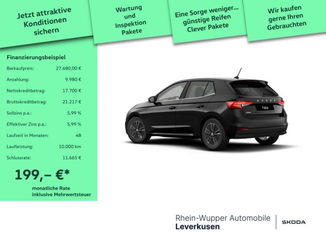 Deze Skoda Fabia staat te koop in Duitsland bij een officiële Skoda dealer. Wanneer u gebruik maakt van onze auto import service dan regelen wij het aankoopproces samen met u. U tekent en betaalt zelf. U bent in de meeste gevallen ook juridisch de koper. Dat kan belangrijk zijn voor garantie, rechtspositie en de lagere Duitse btw.