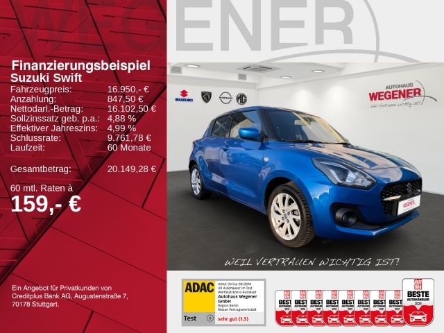 Voor zakelijke klanten bieden wij optioneel een financial lease oplossing en voor particuliere klanten een persoonlijke lening. Met onderstaande module kunt u uw maandbedrag berekenen voor het financieren van bovenstaande Suzuki Swift.