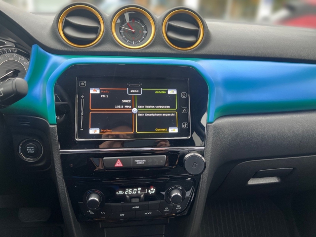 Deze Suzuki Vitara staat te koop in Duitsland bij een officiële Suzuki dealer. Wanneer u gebruik maakt van onze auto import service dan regelen wij het aankoopproces samen met u. U tekent en betaalt zelf. U bent in de meeste gevallen ook juridisch de koper. Dat kan belangrijk zijn voor garantie, rechtspositie en de lagere Duitse btw.