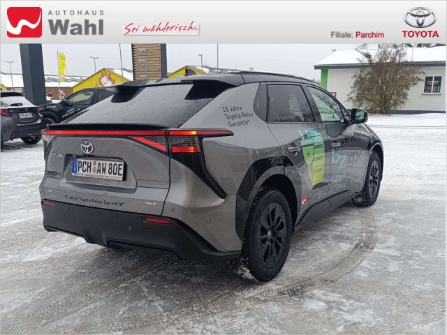 Deze Toyota bZ4X staat te koop in Duitsland bij een officiële Toyota dealer. Wanneer u gebruik maakt van onze auto import service dan regelen wij het aankoopproces samen met u. U tekent en betaalt zelf. U bent in de meeste gevallen ook juridisch de koper. Dat kan belangrijk zijn voor garantie, rechtspositie en de lagere Duitse btw.