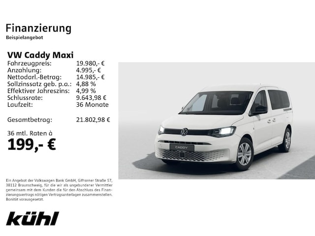 Voor zakelijke klanten bieden wij optioneel een financial lease oplossing en voor particuliere klanten een persoonlijke lening. Met onderstaande module kunt u uw maandbedrag berekenen voor het financieren van bovenstaande Volkswagen Caddy.