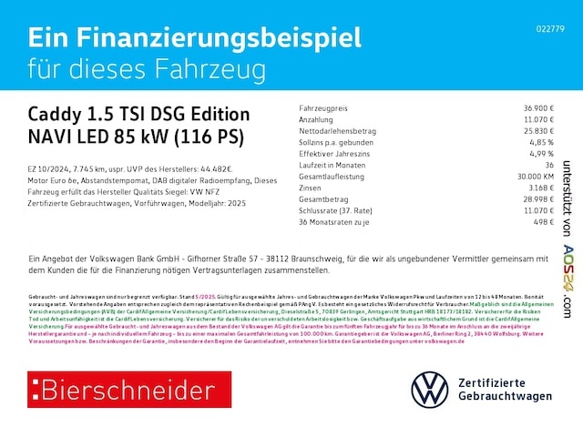 Voor zakelijke klanten bieden wij optioneel een financial lease oplossing en voor particuliere klanten een persoonlijke lening. Met onderstaande module kunt u uw maandbedrag berekenen voor het financieren van bovenstaande Volkswagen Caddy.