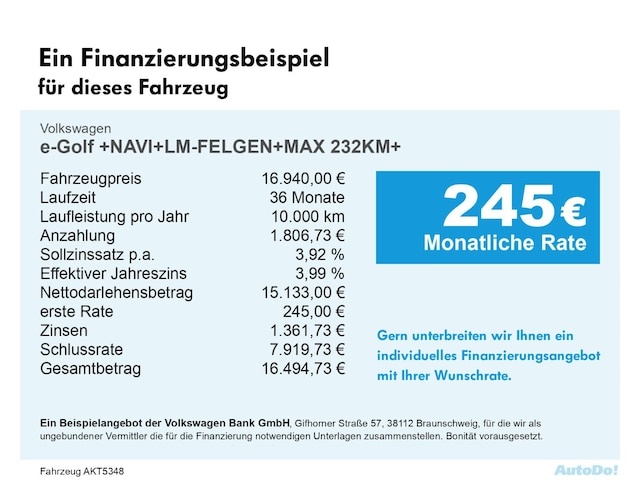 Voor zakelijke klanten bieden wij optioneel een financial lease oplossing en voor particuliere klanten een persoonlijke lening. Met onderstaande module kunt u uw maandbedrag berekenen voor het financieren van bovenstaande Volkswagen Golf.