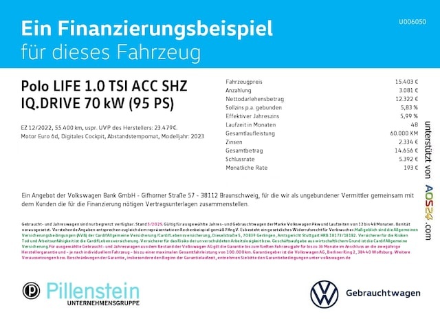 Voor zakelijke klanten bieden wij optioneel een financial lease oplossing en voor particuliere klanten een persoonlijke lening. Met onderstaande module kunt u uw maandbedrag berekenen voor het financieren van bovenstaande Volkswagen Polo.