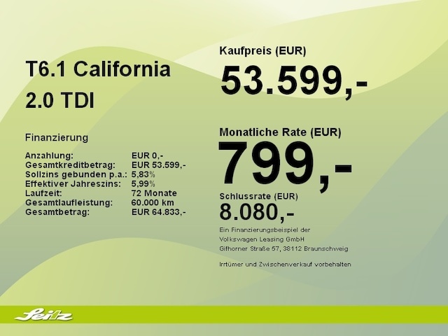 Voor zakelijke klanten bieden wij optioneel een financial lease oplossing en voor particuliere klanten een persoonlijke lening. Met onderstaande module kunt u uw maandbedrag berekenen voor het financieren van bovenstaande Volkswagen T6.1 California.