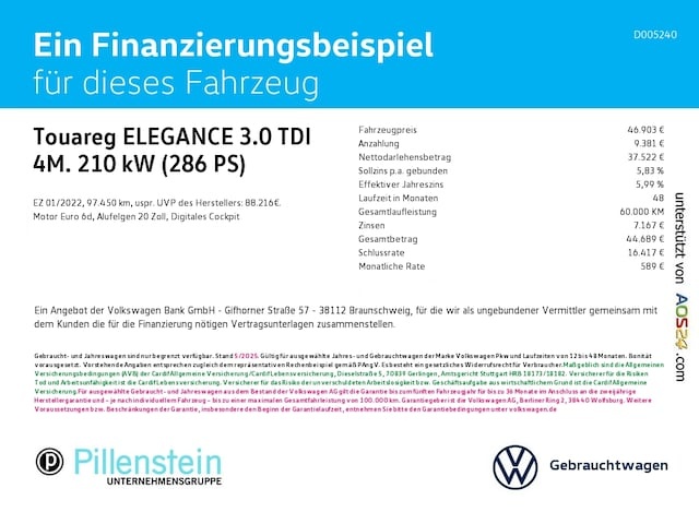 Voor zakelijke klanten bieden wij optioneel een financial lease oplossing en voor particuliere klanten een persoonlijke lening. Met onderstaande module kunt u uw maandbedrag berekenen voor het financieren van bovenstaande Volkswagen Touareg.